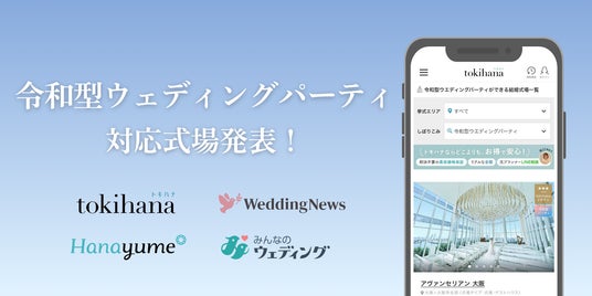 本取り組みは、トキハナ・ウェディングニュース・ハナユメ・みんなのウェディングの4社による共同発表で、各ブライダルメディアでは「令和型ウェディングパーティ対応式場」であることが一目で分かるよう、式場ページにアイコンを表示。