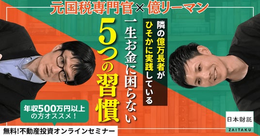 株式会社日本財託が、無料オンライン番組『【元国税専門官×億リーマン】となりの億万長者がひそかに実践している、一生お金に困らない「5つの法則」』を放送。ドラマ『プライベートバンカー』の監修者でもある元国税局員の小林義崇氏と、サラリーマン投資家の渡辺氏を招き、インフレ時代の資産形成法について対談する。放送は、11/3(月)~11/16(日)の限定配信。