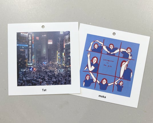 贈り物を介して生まれるつながり。そのつながりこそが一番の贈り物なのでは?という視点で、今回の明日見世のテーマは「Connection is the gift」としました。インスタレーションでは5名のアーティストが「Connection is the gift」という架空の楽曲のレコードジャケットをデザインする企画を実施。贈り物、音楽、アートなど…つながりを生んでくれるものってたくさんある!インスタレーションを通じてそんな発見をしてもらえたら嬉しいです。