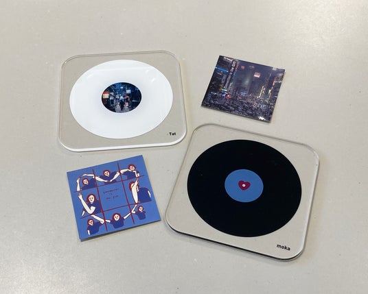 明日見世に併設するPostCoffee KIOSKにて、本日のプレミアムコーヒー(税込 1,000 円)またはラテ(税込 800 円)をご注文いただいたお客様には、インスタレーション参加アーティストの作品をあしらった「ステッカー付き特製カップ&紙コースター」でご提供します。