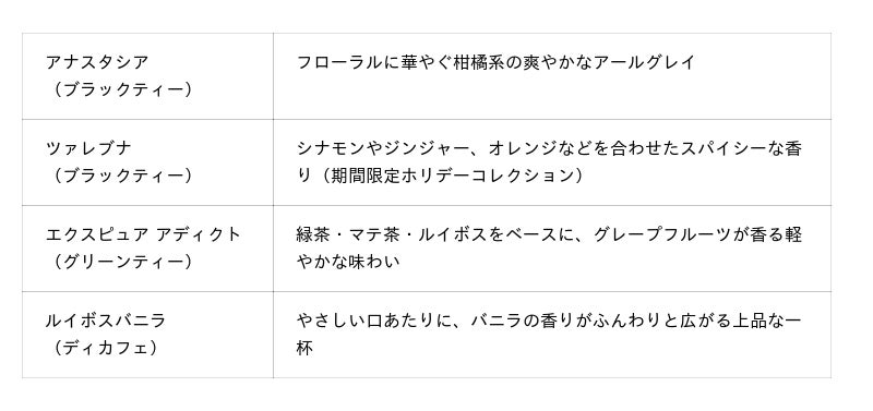 紅茶はパリの老舗「KUSMI TEA(クスミティー)」を使用紅茶は、150年以上の歴史を持つパリ発のティーブランド「KUSMI TEA(クスミティー)」のオーガニックティーをセレクト。フリーフロー(おかわり自由)で、お好みのフレーバーをゆっくりとお楽しみいただけます。紅茶に含まれるタンニンが口の中をさっぱりと整え、チーズやチョコレートの濃厚な味わいと好相性。チーズや紅茶そのものの風味を味わうのはもちろん、両者のマリアージュもぜひお楽しみください。