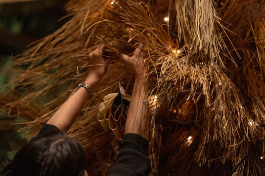 大阪がかつて米どころとして栄えた歴史に着想を得て、豊穣の象徴である「米」の稲わらを素材として採用。秋の収穫を終え、本来であれば処分される稲わらに新たな命を吹き込み、クリスマスツリーとして甦らせました。さらにクリスマス期間が終わると、稲わらは新年を迎える「しめ縄」などへと姿を変え、もう一度生まれ変わります。季節とともに形を変えながら命をつないでいく、循環型の装飾です。
