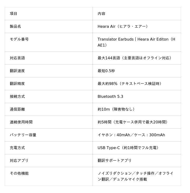 リアルタイム翻訳・ノイズ抑制・オフライン対応を備えた次世代イヤホン「Heara Air」をHeara Air Labが発表。11月8日よりCAMPFIREで先行販売開始。