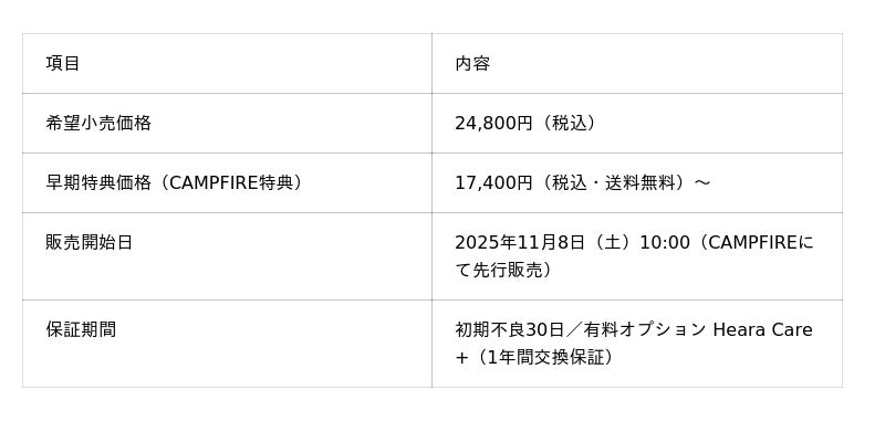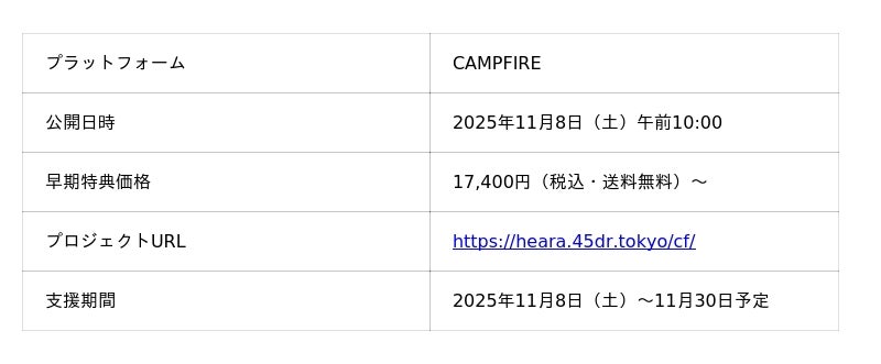 同年11月8日(土)より、クラウドファンディングサービス「CAMPFIRE」にて先行販売を開始いたします。