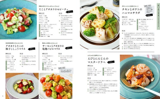肉や魚を使ってタンパク質も摂れる、栄養バランス抜群のサラダ&マリネも掲載。野菜だけでは物足りないときや、育ち盛りの家族のためにボリュームを出したいときにおすすめです。手軽に作れて見た目も華やか、主役にもなる一品がそろっています。