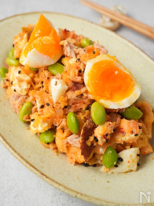 「コグマサラダ」とは韓国発のさつまいもサラダ。さつまいもを丸ごと電子レンジで加熱し、包丁いらずで作れるお手軽レシピです。キムチを合わせる意外な組み合わせがクセになる美味しさ。さつまいもの食物繊維とキムチの乳酸菌による「腸活×美肌×ダイエット」のトリプル効果にも注目です。