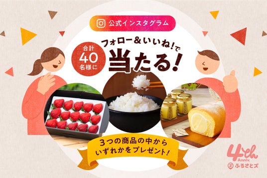 Instagram「@furusatoscom」のアカウントをフォロー&キャンペーン投稿にいいねをすると抽選で40名様にプレゼントが当たる!