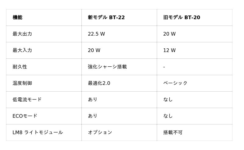 特長1:【性能進化】最大出力22.5Wへ。