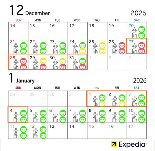 世界の大手総合旅行ブランドの一つであるエクスペディアは、2025年~2026年の年末年始における「穴場コスパ海外旅行先ランキング」や「人気海外旅行先ランキング」に加え、「フライトとホテルの混雑日やお得な出発日予想」を発表します。