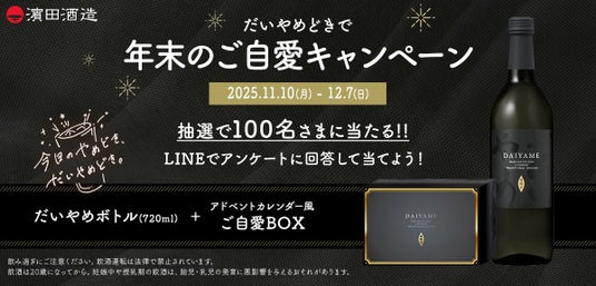 この度、年末の需要期に、更なる認知拡大と「だいやめどき」の世界観の浸透を図るべく、LINEでアンケートに回答すると、「だいやめ~DAIYAME~(720ml)」と、1年の疲れを癒すオリジナル「アドベントカレンダー風ご自愛BOX」が当たるキャンペーンを実施します。