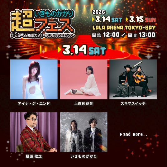 また、今回2日目の15日(日)は、いきものがかりが2006年3月15日に「SAKURA」でメジャーデビューしてから20周年目を迎える、いきものがかりにとっても、ファンの皆様にとっても大切な1日です!