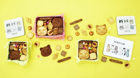 クッキー缶を中心に、猫の魅力をスイーツや雑貨を通して表現しています。