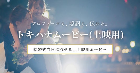 LINEでできる式場探し『トキハナ(https://tokihana.net/)』を運営する株式会社トキハナ(本社:東京都港区、代表取締役社長:安藤 正樹、以下 「トキハナ」)は、トキハナで式場を決定した成約者に向けた結婚式準備サポートサービス「トキハナメイト」で、結婚式当日に式場で上映できる『トキハナムービー(上映用)』の提供を新たに開始します。