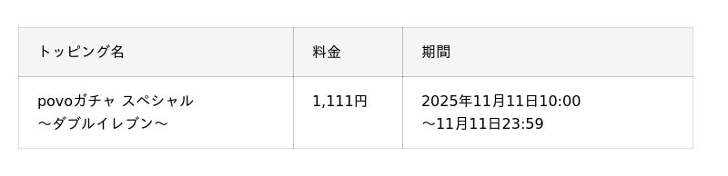 ■「povoガチャ スペシャル~ダブルイレブン~」について
