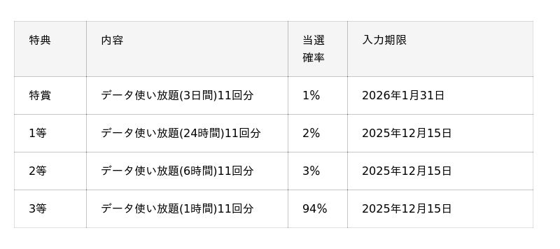 抽選でデータが必ず当たるトッピングです。期間中、何度でもチャレンジいただけます。