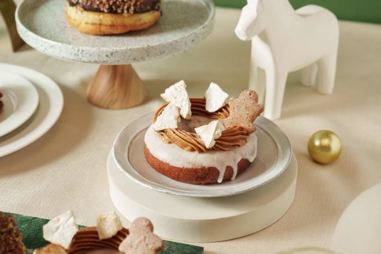 濃厚な焦がしキャラメルクリームにホワイトチョコレートを合わせ、koe donutsオリジナル生地のジンジャーマンクッキーをトッピングしました。