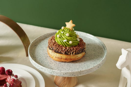 芳醇な香りの宇治抹茶クリームをクリスマスツリーに見立て、ダークチョコレートとクラッシュアーモンドをあわせた「抹茶ツリー」。濃厚な焦がしキャラメルクリームにホワイトチョコレートを合わせ、ジンジャーマンクッキーとメレンゲをトッピングした「キャラメルジンジャーマン」。ラズベリーといちごのチョコレートグレーズにドライフルーツを散りばめ、甘酸っぱさと濃厚なクルーラー生地が相まった「ラズベリーリース」。それぞれ「ツリー」「ジンジャーマン」「リース」をイメージした、心ときめく彩り豊かな全3種類をご用意いたしました。