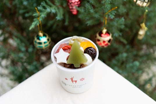 毎年冬に登場する「クリスマスあんみつ」は、船橋屋ならではの伝統製法を活かしながら、洋のエッセンスを取り入れた人気商品。