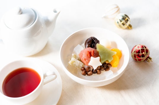 毎年人気の本商品は、和菓子であるあんみつに、クリスマスの華やかさと遊び心を融合させた限定スイーツ。星型くず餅・ツリー型抹茶羊羹・いちご餡・白玉といった彩り鮮やかな具材を、純白のカップに盛りつけました。大切な人への贈り物や、心弾むご褒美スイーツとしておすすめです。