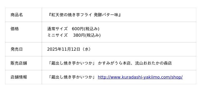 ●『紅天使の焼き芋フライ 発酵バター味』は、焼き芋の自然な甘さと発酵バターの芳醇な香りとコクが調和した、贅沢な味わいが楽しめる商品です。