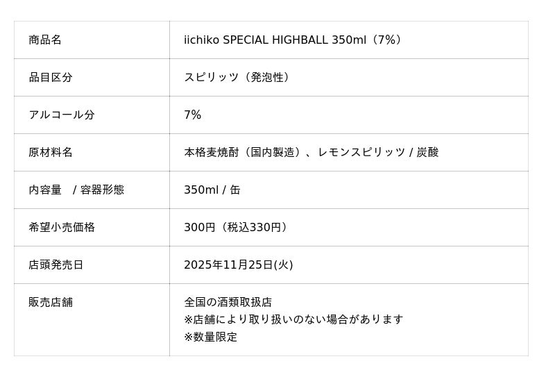 三和酒類株式会社(本社:大分県宇佐市、社長:西和紀)は、RTD(Ready To Drink)タイプの缶入り焼酎ハイボール『iichiko SPECIAL HIGHBALL(いいちこスペシャルハイボール)』を2025年11月25日(火)より、全国発売いたします。