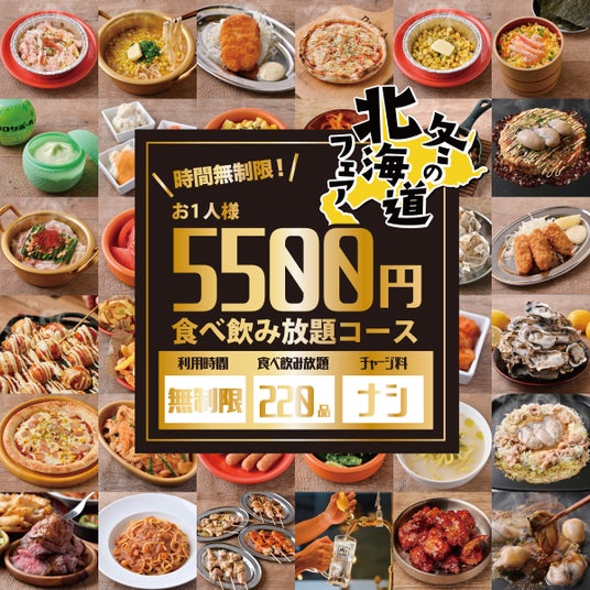 全220品、なんと「時間無制限」の食べ放題&飲み放題で5,500円(税込6,050円)!
