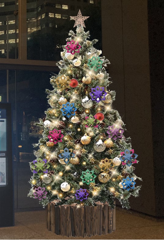 テーマは「未来を編む、サステナブル・クリスマス~多様性と調和のデザイン~」。今年開催された大阪・関西万博のテーマである「命輝く未来社会のデザイン」から「サステナビリティ」「多様性」というキーワードをもとに、サステナブル素材である“紙バンドクラフト”を活用しました。カラフルかつあらゆる形のオーナメントで装飾することにより多様性を表現しています。10月21日(火)に近隣のオフィスワーカーを対象にメインツリーに飾るオーナメント作りのワークショップを行い、紙バンドクラフトを用いて、参加者に色とりどりのオリジナルオーナメントを制作いただきました。今年は、千代田区にある「伸芽‘Sクラブ学童 飯田橋校」に通う子どもたちに放課後プログラムの一環として制作をしてもらったオーナメントも、一緒にツリーを彩ります。