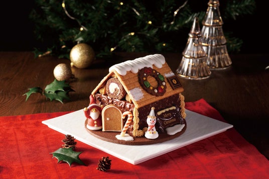 チョコレートケーキでつくられた、サンタのお菓子のお家へようこそ!チョコアーモンドスポンジとコクのあるバタークリームを8層に重ねた、カラメルが香るチョコレートケーキに、小さなブッシュドノエルや、クッキーの屋根をのせました。すべて食べられるスイートなお家を囲んで、すてきなパーティーを。