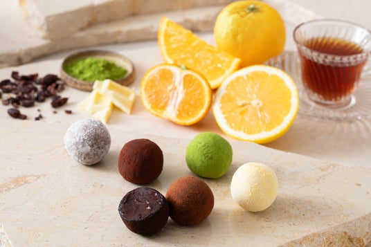 「クラシック」「ライム発酵」「みかん発酵」の3つのフレーバーは、同一の配合に揃えることで、発酵によるカカオの風味の違いを明確に感じていただける構成に仕上げました。また、抹茶や紅茶を合わせたトリュフは、なめらかな口どけとともにお茶の深みと柑橘香りが重なり合うフレーバー。カカオが持つ多彩な表情を、ぜひこのトリュフでご堪能ください。