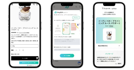 こうした状況から、同社にてこのたび「AnyGift」を導入されました。住所を知らなくても贈ることができるeギフトサービスを活用することで、より気軽に「クリニーク」の製品をギフトとして利用できる環境が整いました。今回の取り組みにより、「大切な人へ、特別な体験を届けたい」というお客様の思いを実現しつつ、さらに多くの方々に製品が届く機会が広がることが期待されます。