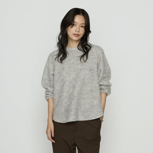 ゆとりのある身頃と抜け感のあるラグランスリーブが、トレンド感とリラックス感を両立。