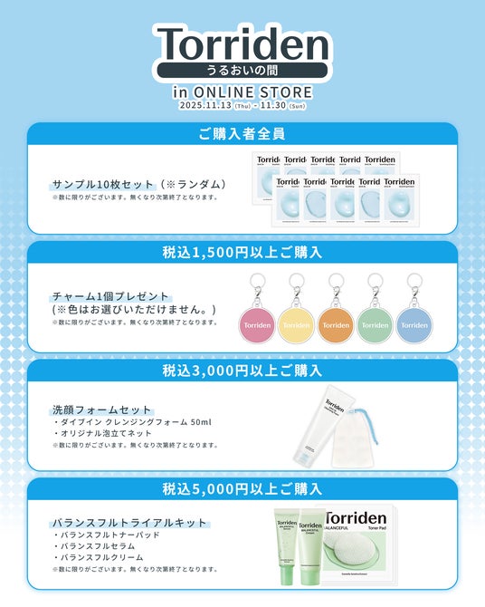 公式ECサイトにて『Torriden うるおいの間 in オンラインストア』を2025年11月13日(木)~30日(日)まで開催