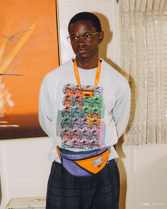 『機動戦士ガンダム』を象徴するモビルスーツの1つである〈MS-06 ザクII〉を、ポップアートの手法で再現したスウェット。