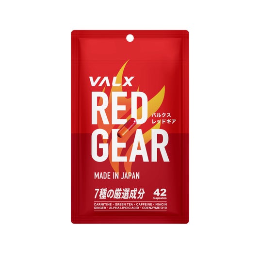 『VALX RED GEAR』は、燃焼を合理的に効率化する「天然カフェイン」「緑茶カテキン」「ジンジャーエキス」「ナイアシン」「L-カルニチン」「コエンザイムQ10」「α-リポ酸」といったこだわりの7つの成分をバランスのよい分量でしっかり配合している”オールインワン燃焼サポートサプリ”です。