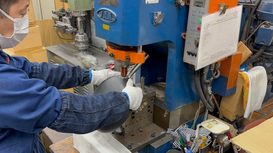 ハンドルには軽くて強いチタン材を使用。熱くなりにくく、変形もしにくいため、一生モノとして使い続けられます。チタンの加工は非常に難しいとされておりますが、関東の職人さんの手により実現。1本ずつきれいに円形加工、溶接、磨き上げを施していきます。そのうえで、本体とのつなぎのカシメも1個ずつ丁寧に加工し、仕上げられていきます。