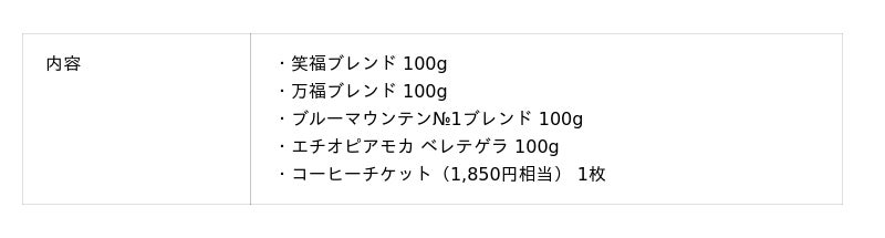 福袋限定ブレンドや福袋限定のスペシャルティコーヒー2種に加えブルーマウンテンNo.1が入ったセットです。