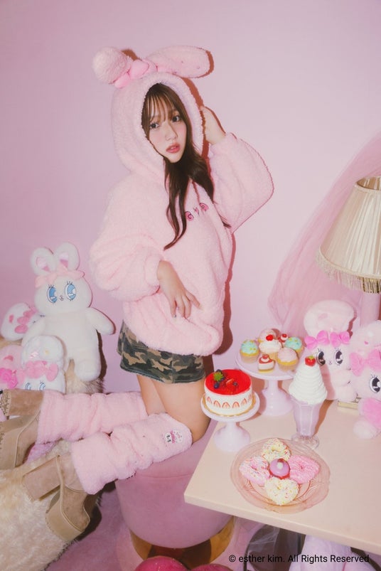 韓国系アメリカ人であるEsther Kim氏がデザインした、POPでガーリーなテイストのバニーのキャラクター。ロサンゼルスで生まれ、10代を東京で過ごしたEsther Kim氏が描く、多様な文化や価値観に触れた経験から生み出された独特の世界観が大きな魅力です。