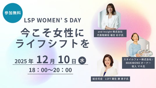 初回イベントは特別ゲストに福吉彩子氏、坂入マキ氏を招いたトークセッションやLSP女性メンバーによる座談会を行う「今こそ女性にライフシフトを~LSP WOMEN’S DAY~」を12月10日(水)に開催します。ぜひご参加ください。