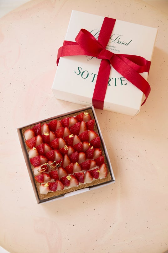 スクエアボックスタルトが生み出すのは、 ホールケーキともカットケーキとも違う “特別感”。フタを開けた瞬間に“整った美しさ”が視界いっぱいに広がり、SO TARTE らしい洗練が宿ります。この形とサイズはギフト文化が進む今の時代にぴったりのサイズ感。 持ち運びもしやすく、記念日以外の “何でもない日ギフト” にも最適です。