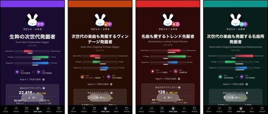 – 次世代発掘者、トレンド先駆者、名曲愛好者などの「リスナーのタイプ」の診断結果が表示される