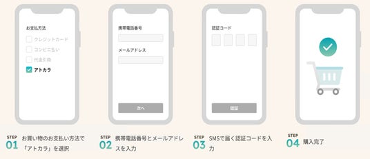 「アトカラ」は購入者が商品を購入し受け取った後に、コンビニ払い・銀行振込・口座振替で支払うことができるあと払いサービスです。