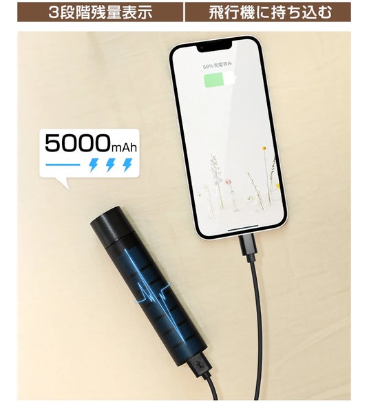 内部には5,000mAhの大容量バッテリーを内蔵しており、