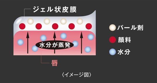 唇から蒸発する水分を活用して密着ジェル膜に変化する独自技術*により、つけたての色が長時間持続。