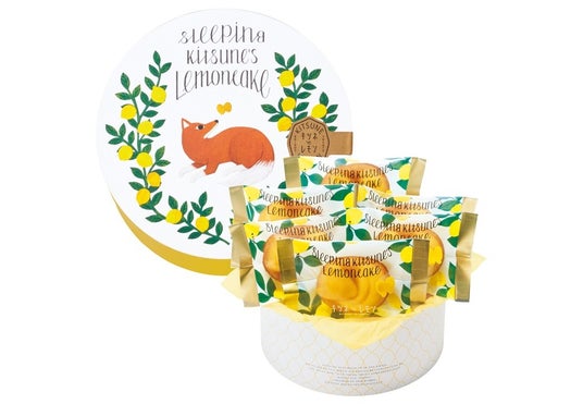 眠っているキツネをかたどった、香りと味わいの2層仕立てのレモンケーキ