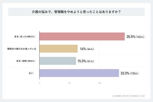 介護の悩みを理由に「管理職を辞めたい、または迷ったことがある」と回答した人は全体の約67%にのぼりました。