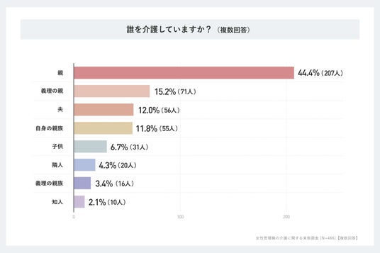 調査の結果、介護をしている女性管理職・リーダーのうち4割強が一人で介護を担い、6割以上が働き方を調整した経験を持つことが分かりました。