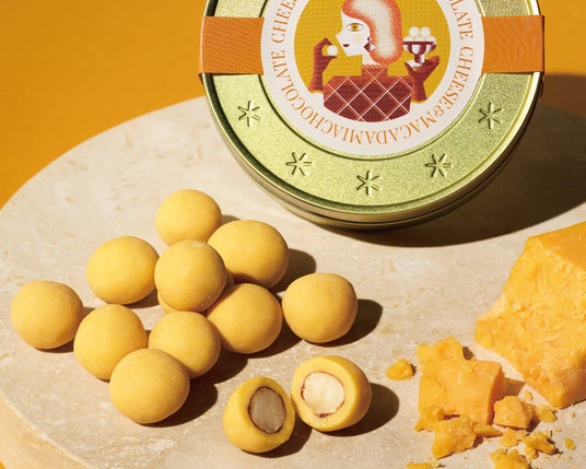 【初登場】チーズ&マカダミア チョコレート コクのあるチェダーチーズチョコレートで、カリッと食感のキャンディングマカダミアナッツを包