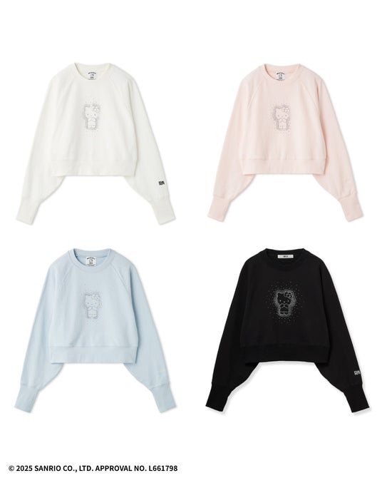 愛らしいポージングのハローキティをラインストーンで表現した華やかなスウェットプルオーバー。