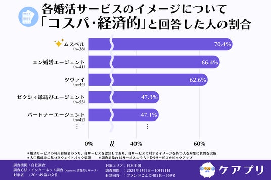 5.「コスパ・経済的」イメージは『ムスベル』が70.4%、『エン婚活エージェント』『ツヴァイ』も6割超え