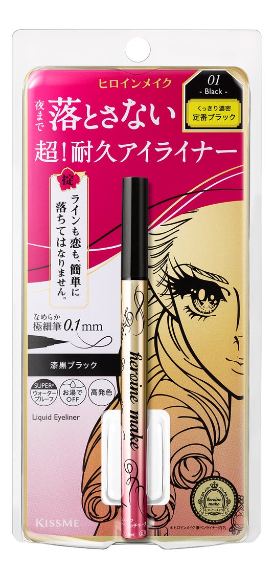 耐水性の高い成分をオリジナル比率でブレンドしたスーパー※1ウォータープルーフ処方で、涙・汗・皮脂・こすれに強く、美しいラインを長時間キープする耐久リキッドアイライナー。
